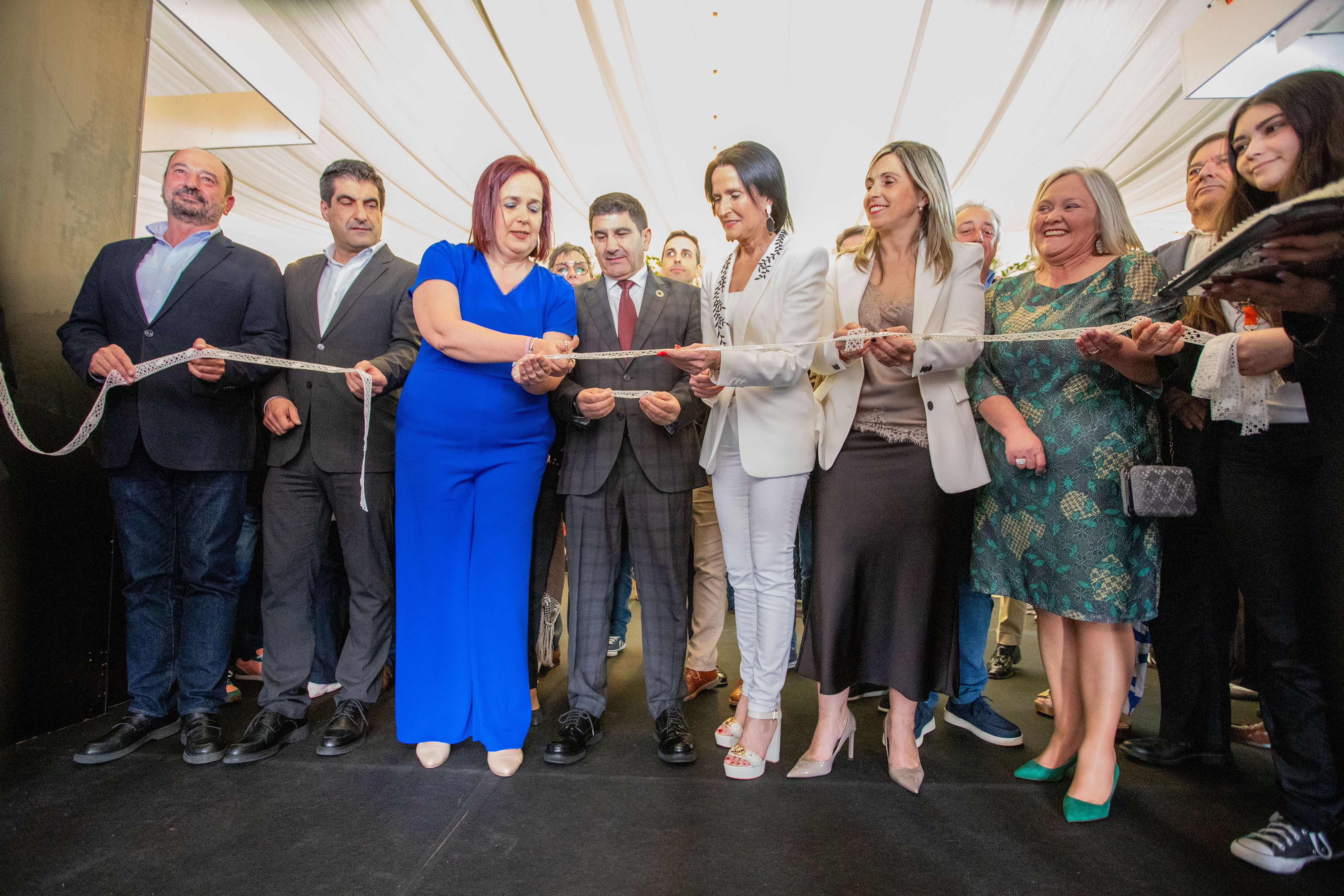 A alcaldesa de Camariñas, Sandra Insua; o delegado do Goberno, Pedro Blanco; a deputada provincial da comarca, Mónica Rodríguez; o director xeral de Comercio da Xunta de Galicia, Gabriel Alén; e o director da Axencia de Turismo de Galicia, Xosé Manuel Merelles, foron os encargados de cortar a cinta de encaixe que, simbolicamente, dá o pistoletazo de saída á Mostra.